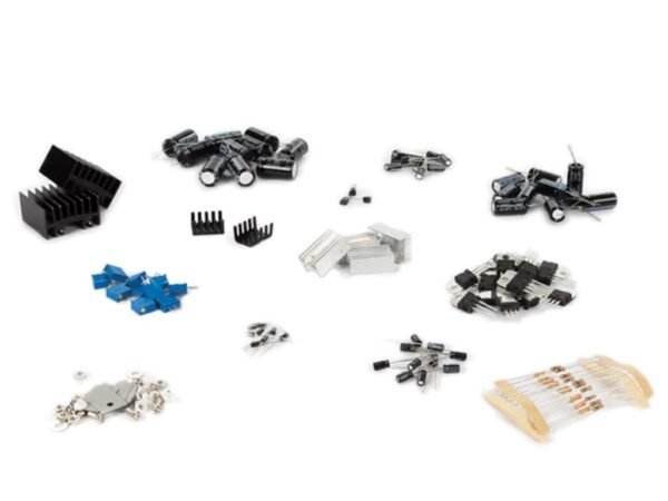 Créez vos propres régulateurs de tension avec ce kit de démarrage. Livraison avec dissipateurs, condensateurs électrolytiques, diodes, vis et résistances.