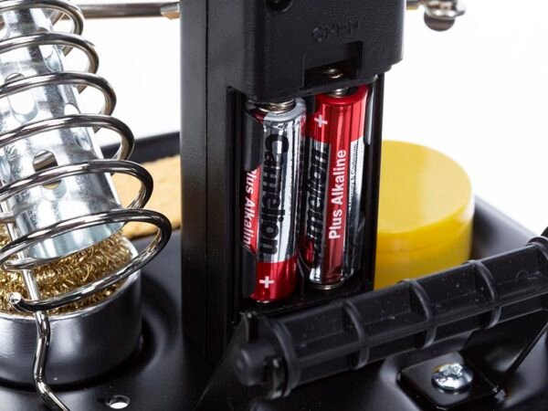 Cet outil pratique est livré avec des accessoires essentiels, notamment un support de fer à souder, des pinces crocodile, un porte-fil à souder, un flux de soudure et un nettoyeur de fer à souder. Que vous souhaitiez travailler avec des piles (4 piles AA, non incluses) ou via un adaptateur secteur (non inclus), cette troisième main offre une grande flexibilité.